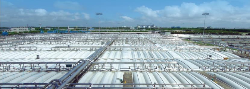 本公司承建的世界规模最大、国内最严标准的专项臭气治理工程----白龙港污水厂除臭罩盖工程。除臭风量达4200万m³/d。全封闭罩盖面积超25万㎡。获得2016年国家重点环境保护实用技术示范工程。