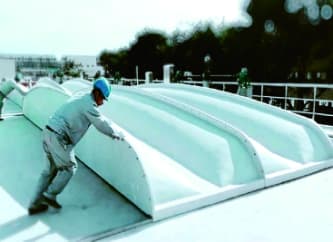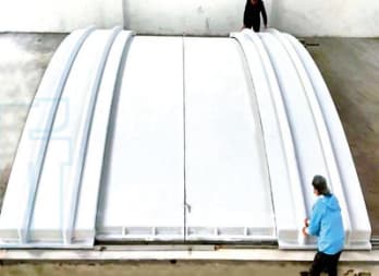 2、玻璃钢罩盖按实际测绘后制作:形状统一、大小一致、荷载分布均衡,无论是池形如何、老池改造还是新建项目都按合理的方法来安装罩盖,无需另外考虑结构加固或设立支点等,升级改造项目无须停产施工。
