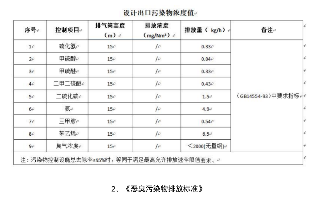 要求指标:《恶臭污染物排 放标准(GB14554-1993)》二级标准