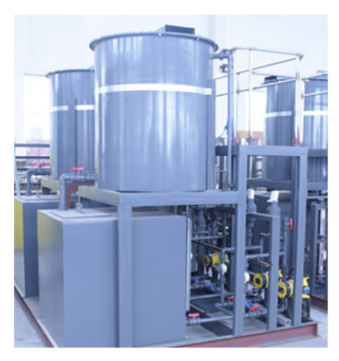 利用高速水力冲散药剂,增加细度,提高药剂和水的急促,渗透面积,缩减溶解时间;采用三槽溢流式组合,即制备、熟化和投配,利用重力和溶解度产生溶液的比重差,自动将已溶和未溶的分离,再经低速搅拌器的搅拌,提高溶液的均匀度。