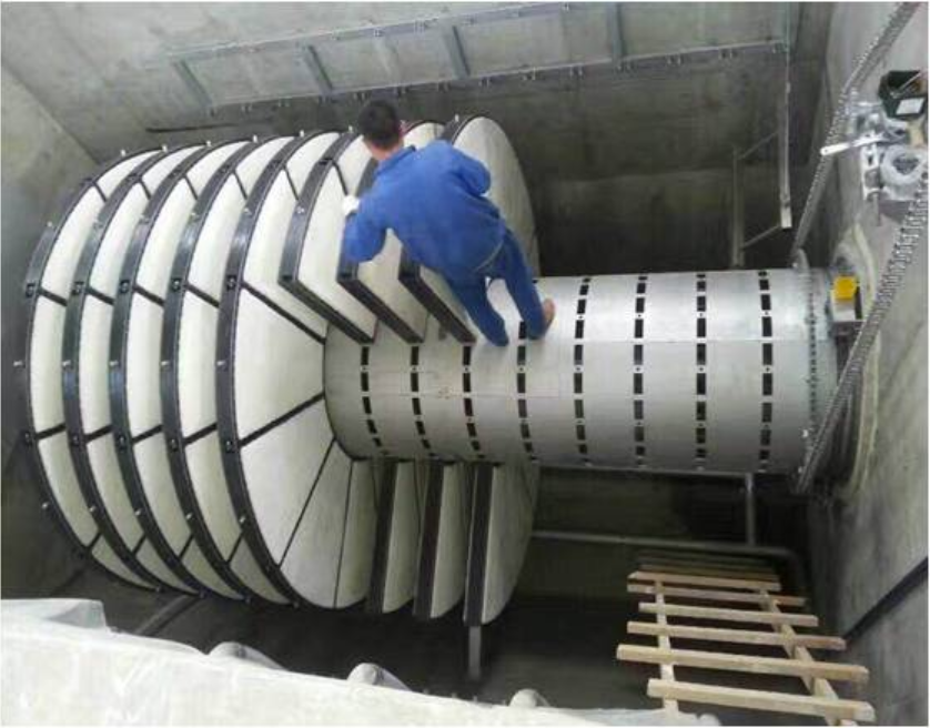 全浸式纤维转盘微滤装置主要用于地表水进一步净化、污水处理深度处理( 设置于常规水处理系统二沉池后,主要去除总固体,结合投加药剂去除部分磷、浊度、COD等,适合于已建及新建污水处理厂达标排放水由一级B提升至一级A )、中水回用等。