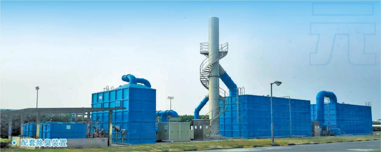 本公司承建的世界规模最大、国内最严标准的专项臭气治理工程----白龙港污水厂除臭罩盖工程。除臭风量达4200万m³/d。全封闭罩盖面积超25万㎡。获得2016年国家重点环境保护实用技术示范工程。