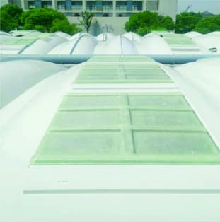 三、优秀的外形设计、强大的荷载能力:我公司选用了最科学的外形设计(已获得国家专利局认证颁发的外形设计专利),玻璃钢罩盖的外形均为弧形曲面,均布活荷载限值达到0. 5Kpa, 并且罩盖的最大挠度不大于L/200(L为罩盖的跨度), 大大提高了罩盖的纵向跨度(目前单跨已超过20m)。